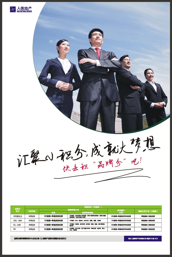 贏取“品牌分”,實現大夢想!品牌分是記錄員工職業成長經歷,幫助員工實現人生夢想的職業成長計劃。每位員工用有價值的行為和結果建立受人尊重的品牌信譽。贏取品牌分,即有機會兌換帶薪休假旅游、培訓學習、健身美容等超值獎品。